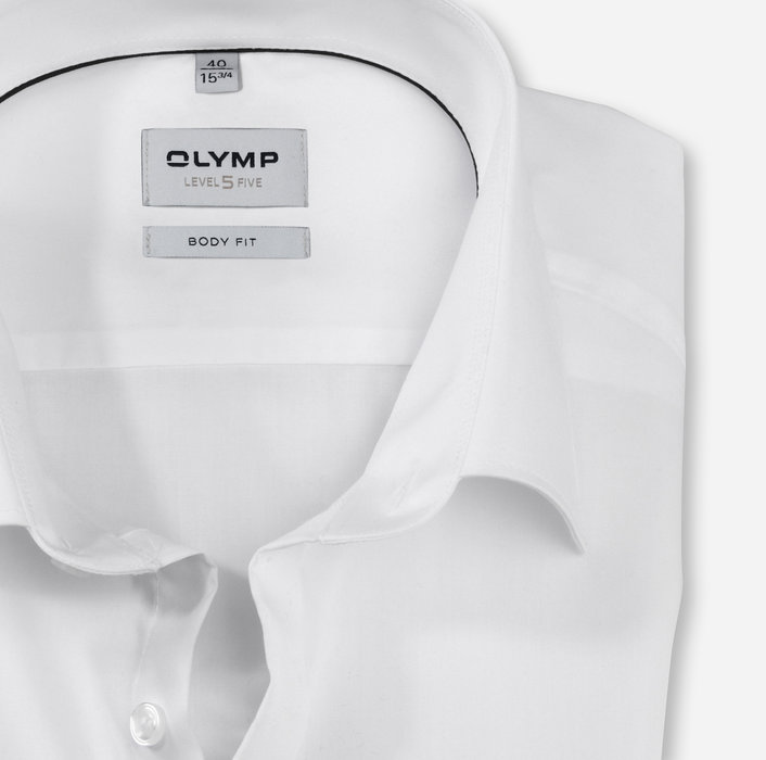 The white colored occasion shirt in the OLYMP Level Five range can’t fail to impress with its slim cut and takes those who wear it to a whole new level of contemporary styling. The fly front give this shirt a clean look which is great for a modern style dress shirt. The easy-iron fabric makes life so much easier. The high quality comfort stretch fabric offers unrestricted freedom of movement – despite the body-fit cut.