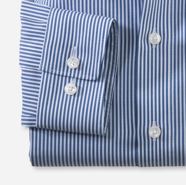 With its contemporary designs and visually appealing, subtle detailing, this is the ideal shirt for business. Premium raw materials, specially selected fabrics and many years of expertise in workmanship, make this navy colored OLYMP Luxor Modern fit a top performer. Particularly with the non-iron, wrinkle-free and breathable shirt fabrics which are kind to the skin.