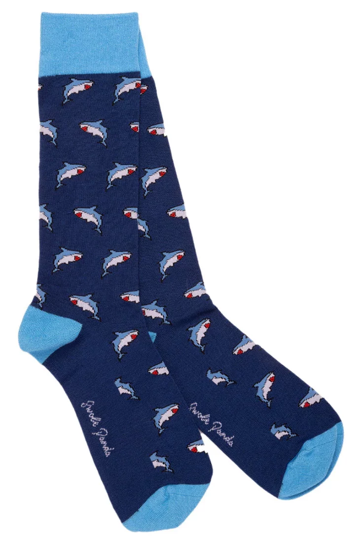 Fierce and gentle all in one, our Shark Bamboo Socks boast a royal blue canvas with vibrant pink trimmings, dotted with the world’s most deadly creature. There’s no doubt these Shark Socks will bring a charming nautical motif to your sock drawer.